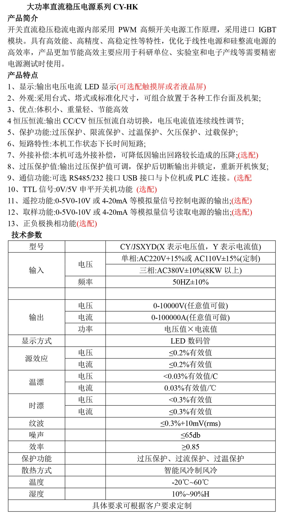 大功率直流穩壓電源系列CY-HK