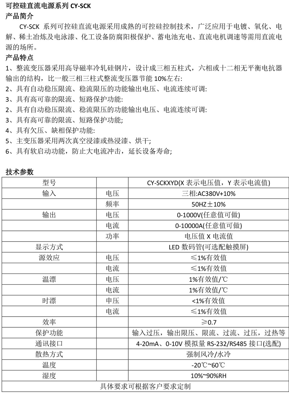 可控硅直流電源系列CY-SCK